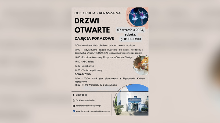 W najbliższą sobotę 7 września w Domu Kultury „Orbita” odbędą się drzwi otwarte. Organizatorzy zapewniają wiele atrakcji.