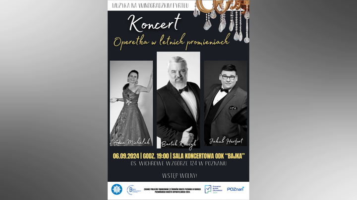 Najpiękniejsze przeboje operetkowe rozbrzmią niedługo na Winogradach. I będzie ich można posłuchać za darmo. Przed nami kolejny koncert z cyklu „Muzyka na winogradzkim fyrtlu”.