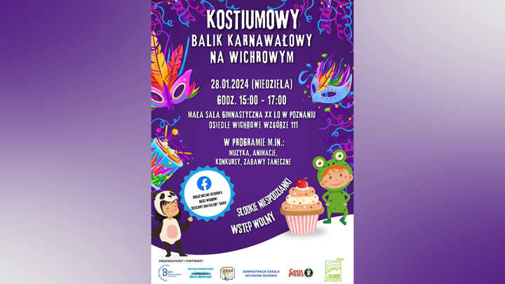 W najbliższą niedzielę, 28 stycznia na Wichrowym Wzgórzu odbędzie się kostiumowy bal karnawałowy dla całych rodzin. Imprezę organizują rada i administracja osiedla, Dom Kultury „Bajka” i XX Liceum Ogólnokształcące. Posłuchajcie państwo o szczegółach.